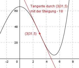 Aufgabe 89 Der Graph einer achsensymmetrischen ganzrationalen Funktion 4. Grades hat im Wendepunkt (3|31,5) die Steigung -18. Wie lautet seine Funktionsgleichung?