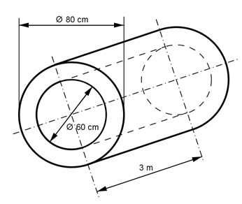 Aufgabe 35 Berechnen Sie die Masse m eines Zylinders mit d = 1,4 m,h = 8,6 m und ρ = 2,4 t/m3.