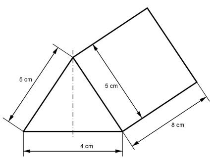 Aufgabe 55 Berechnen Sie das Volumen V und die Oberfläche O des dargestellten Prismas.