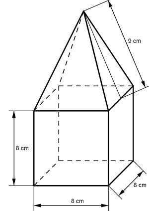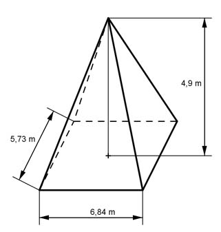 Aufgabe 188 Eine quadratische Pyramide hat eine Mantelfläche M von 209,1 cm2 und eine Seitenhöhe hs von 12,3 cm. Wie groß ist ihr Volumen V? V = cm3