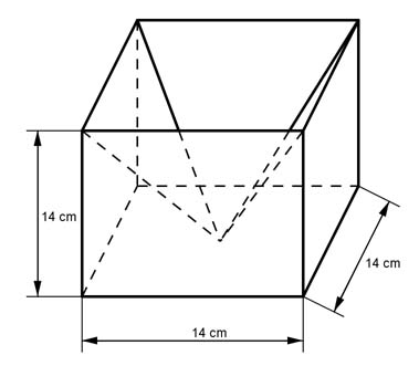 Aufgabe 184 Eine quadratische Pyramide hat eine Höhe h von 4 cm und eine Grundseite a von 12 cm. Wie groß ist ihre Oberfläche O? O = cm2