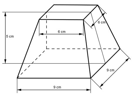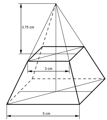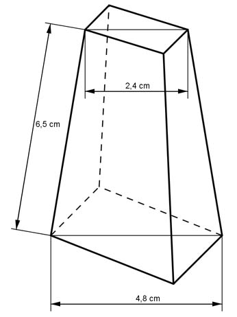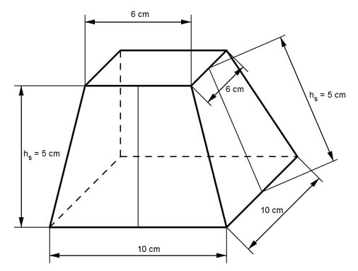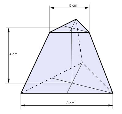 Aufgabe 264 Wie groß sind das Volumen V und die Oberfläche O des dargestellten quadratischen Pyramidenstumpfes?