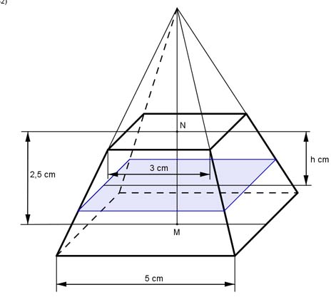 Aufgabe 256 Wie groß ist h, wenn das Volumen des Pyramidenstumpfes halbiert werden soll?