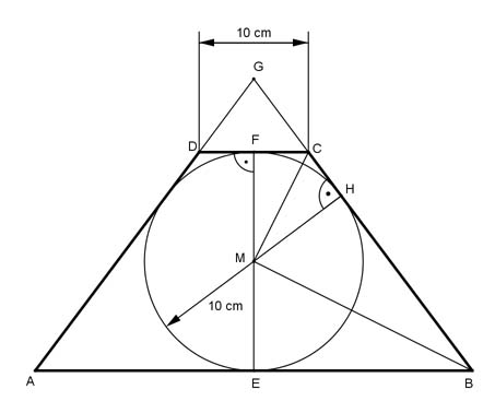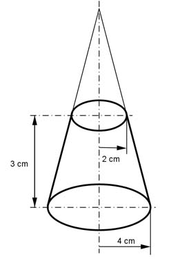 Aufgabe 259 Wie groß ist das Volumen eines geraden Kegelstumpfes, wenn der kleinere Radius 7,2 cm, der größere 9,6 cm und sein Mantel 20 dm2 betragen? V = cm3