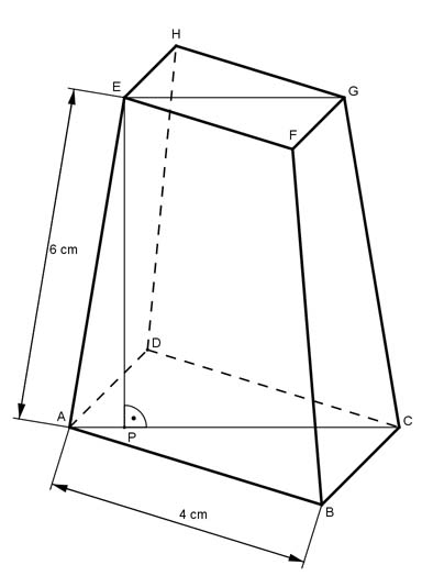 Aufgabe 261 Wie groß ist das Volumen V des dargestellten quadratischen Pyramidenstumpfes, wenn AP = AC/5 ist?